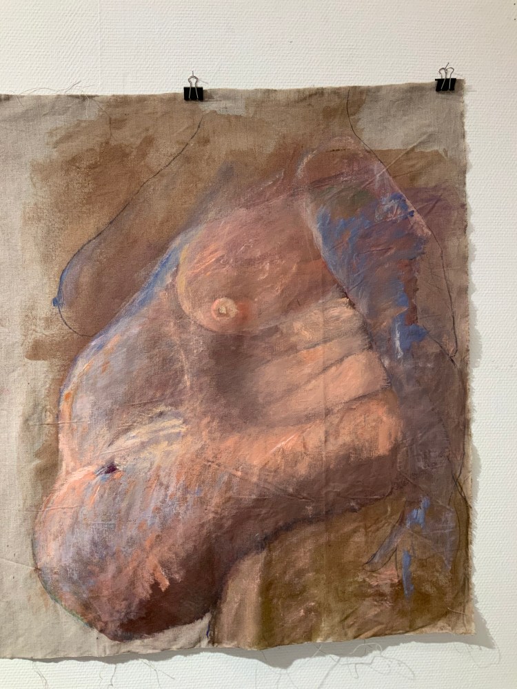 Marc Rutte, in his position as Prime Minister, in his speech of December 19, 2022 in which he apologizes for slavery: “Social awareness is taking place. And therefore also a change in thinking.” The key in this process of changing thinking is to be able to lean towards each other, look for connection and humanity. Many African philosophies, such as in the Yoroba thought tradition, carry the message of humanity in which forgiveness and reconciliation have a much deeper meaning and are so deeply connecting and true in no other culture or religion. From connection and humanity, we would no longer see “the other”, but exist in relation to the other. And a bridge would have been built between the different dialogues. Another reason for including the philosophies of my ancestors in my essay lies in the fact that encounters with other thought traditions make collective thought patterns visible. Telling our shared history from the perspective of all participants also creates space to achieve an inclusive society and future. That is why I discuss our history of slavery and the importance of epistemic justice. Mogobe Ramose: “Humanity is never finished, but a process and a task: a constant search for truth, justice and a sense of community that allows you and me to be human.” With these thoughts, feelings and preference for physicality in my work, I came up with the series “From Belly to Belly” to put a stop to exclusion through the head and to allow connections through the abdomen.